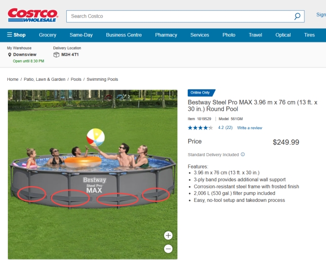 这些泳池在加拿大的Walmart、Canadian Tire、Costco、Amazon等渠道均有销售。