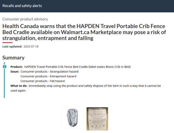 虽然在加拿大尚未报告相关事故,但美国安全官员证实,2007年至2022年期间,已有9名儿童因此设计缺陷溺亡,另有3人差点丧命。