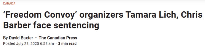 “自由车队”(Freedom Convoy)领袖塔玛拉·利奇(Tamara Lich)和克里斯·巴伯(Chris Barber)的量刑听证会定于周三早上(7月23日)开始举行,此前两人已因“扰乱公共秩序罪”(mischief)被定罪。