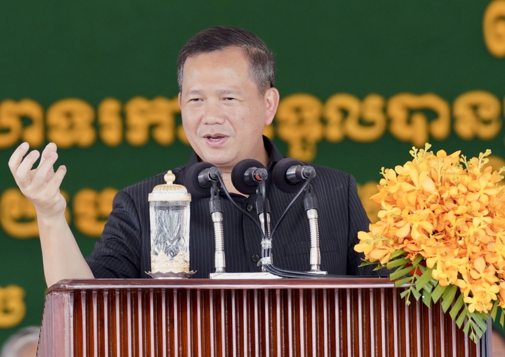 5月22日,柬埔寨首相洪玛奈在出席活动时发表讲话。新华社发(尼多拉摄)