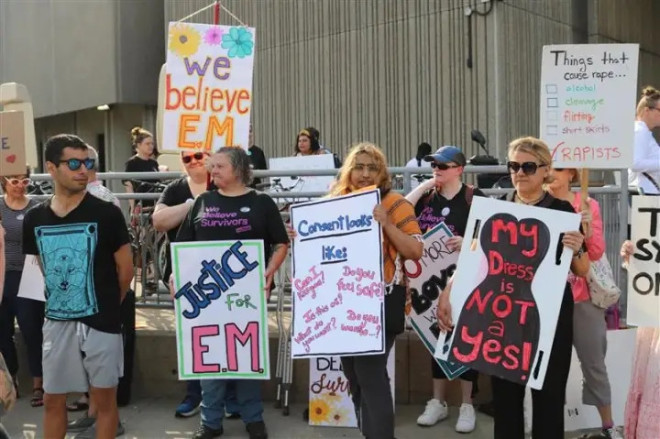 温哥华强奸救助和妇女庇护所(Vancouver Rape Relief and Women’s Shelter)的女发言人克尔纳(Hilla Kerner)谴责了这一判决。她说:“关注这次审判的女性们完全理解E.M.的经历。当房间里有一群男人时,就不存在自愿的同意。这个判决向作为强奸受害者的女性们传达了一个毁灭性的信息。”