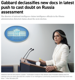 美国哥伦比亚广播公司报道称,民主党对加巴德的最新解密文件提出质疑,指责加巴德歪曲情报调查结果。