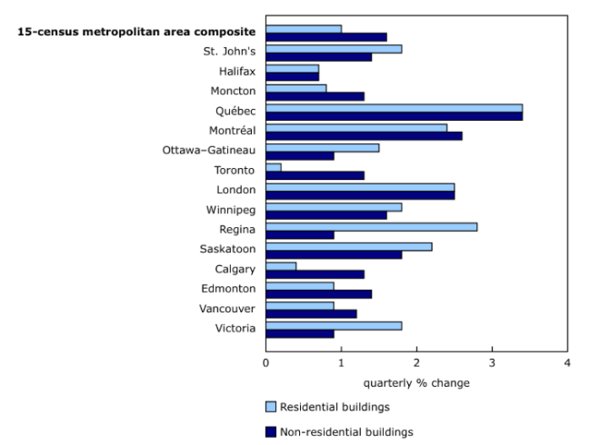 住宅建筑成本在第二季度增长1.0%,以年化计算,涨幅略超央行2%通胀目标的两倍;