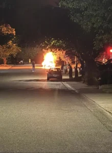 居住在附近的居民Bruce Fairweather表示,案發時正準備就寢,妻子聽到疑似槍聲,他隨即出門查看,發現兩輛汽車“完全陷入火海,宛如火球一般”。