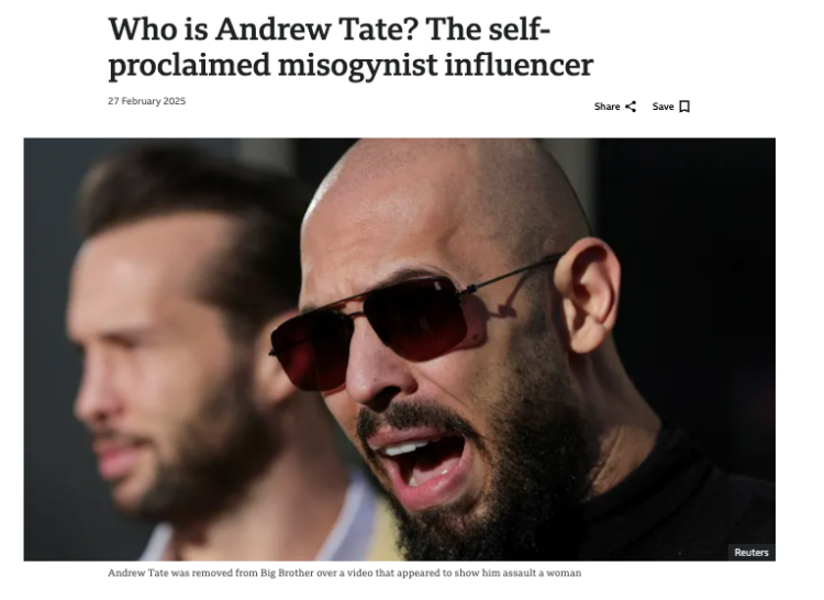 Tate 擁有數百萬社交媒體粉絲,以極端厭女言論和“炫富炫權”形象吸引了大批男生。他目前正面臨英國檢方指控的10項罪名,包括強姦、人口販運和強迫賣淫。
