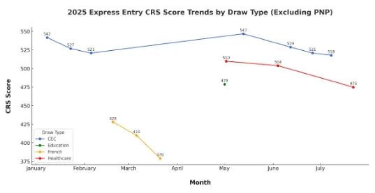 从2025年1月1日到7月24日,加拿大共举行了27次快速通道抽签。
