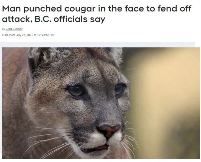 突遭美洲狮攻击 BC省男子用了这招成功脱险,切勿装死