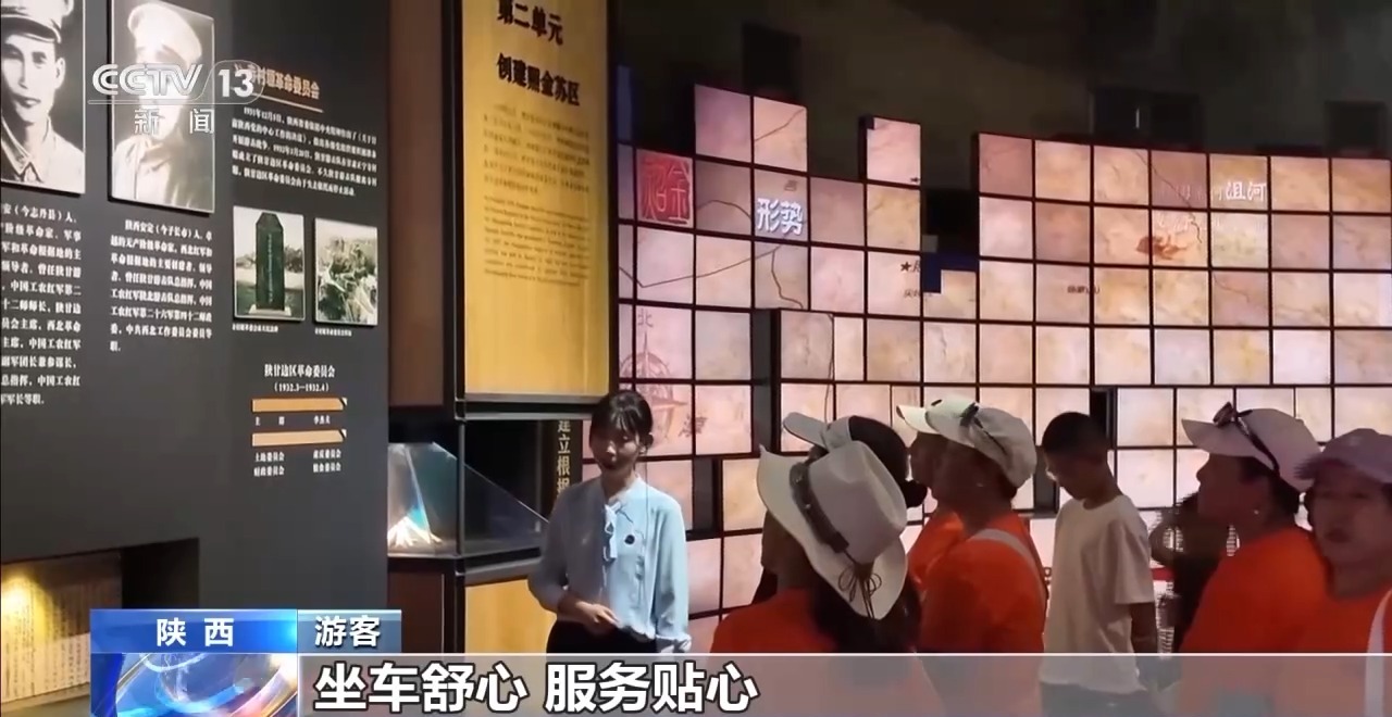 在陕西西安开往照金的红色旅游专列上,银发旅客载歌载舞,沿途从车站到景区的全流程,都做了适老化设计,开通绿色通道,配备专人引导,为老年人节省走路的时间。