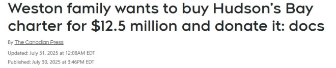 The Bay公司因背负11亿加元债务于3月份申请债权人保护,韦斯顿家族于5月份对这份特许状表示了兴趣,并在6月份提出了正式报价。