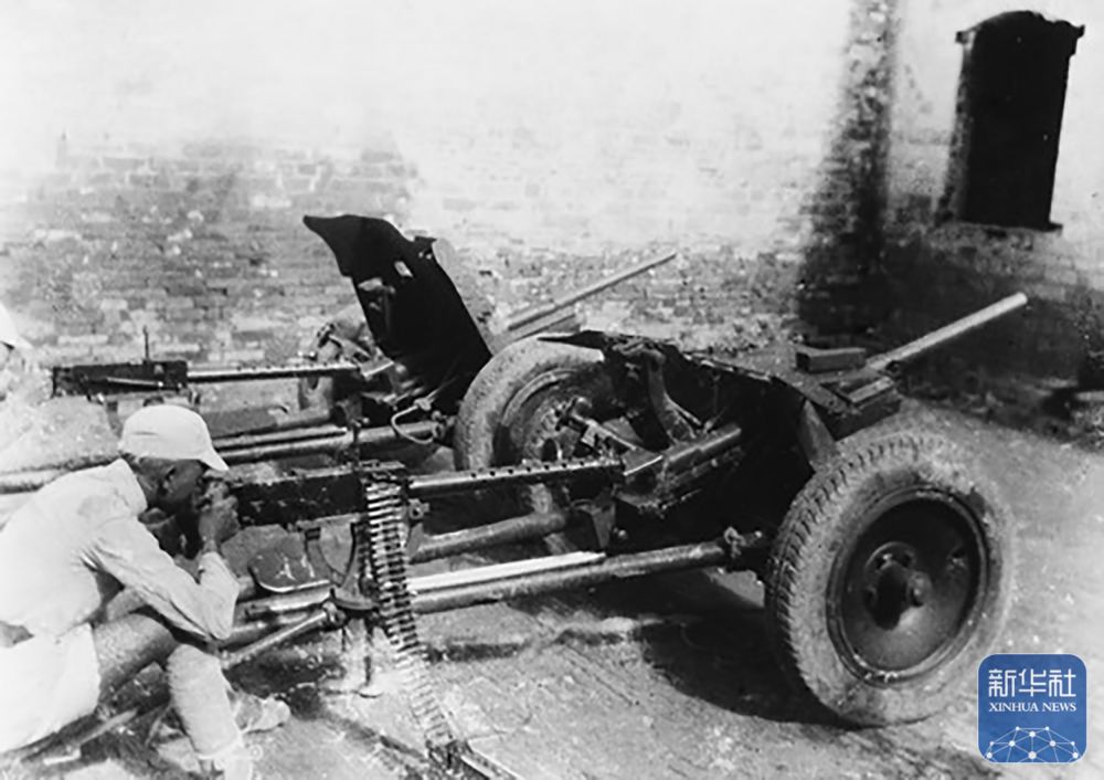 新四军在淮阴和淮安战役中缴获的日军武器(资料照片)。新华社发