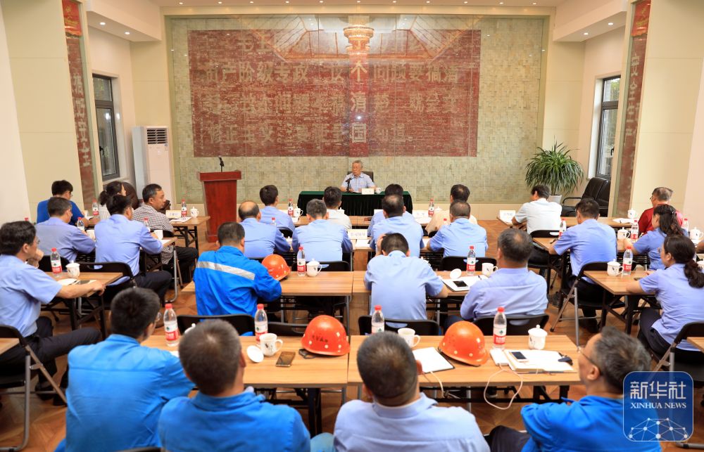 2019年7月25日,王生在南钢“传承红色基因、牢记初心使命”专题党课上讲述革命经历。新华社发(吴斌 摄)