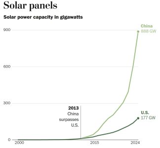 德國和日本隨即填補了美國退出後留下的空位,吸納了大量經驗豐富的工程師和科學家。到了21世紀初,歐洲為風能和太陽能裝置提供巨額補貼,嗅到商機的中國企業開始大規模生產太陽能電池板。