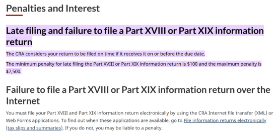 此後,銀行在該用戶沒有回應的情況下,會將此事直接上報給CRA,CRA會根據延誤情況處罰納稅人,最低$100,最高$7,500的罰款。