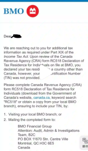 一般來說,CRS/FATCA協議會要求稅務居民所在金融機構向其徵集信息,因此剛剛那名網友才會收到來自銀行,而不是CRA的郵件。