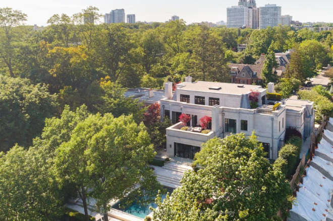 据本地英文媒体CP24报道:根据挂牌信息,这处占地宏大的住宅自今年3月重新上市,此前曾于去年秋季挂牌,但未能售出。房屋总建筑面积达15,200平方英尺,融合精湛工艺与顶级用材,被形容为“城市之巅的建筑杰作”,并配有多个观景点,可俯瞰“令人屏息”的多伦多天际线。