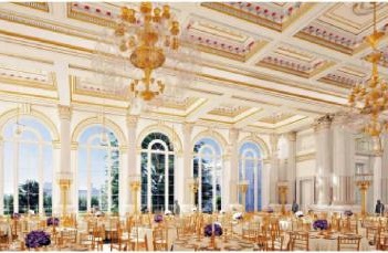 下圖:白宮新建宴會廳的外部效果圖。\網絡圖片;上圖:白宮新建宴會廳室內效果圖。\網絡圖片