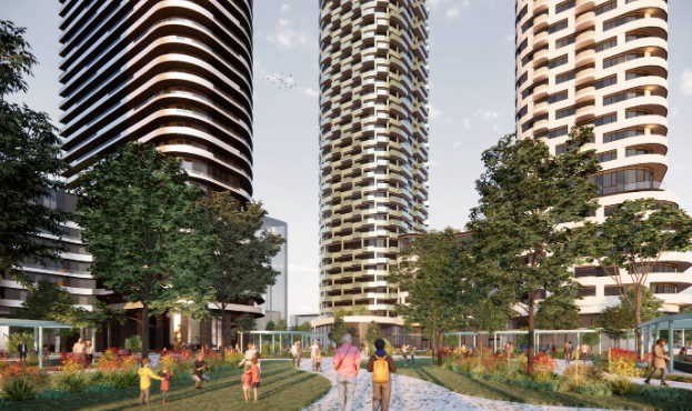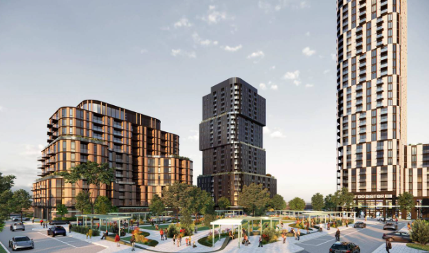 根据2025年7月提交给旺市(Vaughan)政府的最新开发申请,位于Weston Road与Highway 7交界、靠近400高速公路的Woodbridge Square购物中心,将被彻底拆除,并重建为一个包含9栋高层住宅塔楼、近4400个新公寓单元的大型住宅综合体。