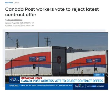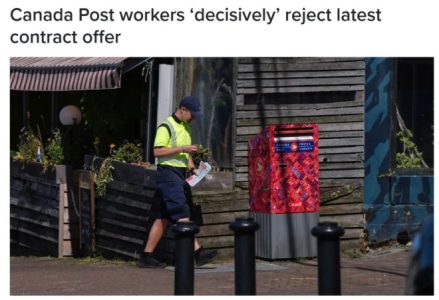 全國郵政工人工會(CUPW)本周五宣布,郵政員工已投票拒絕加拿大郵政公司(Canada Post)最新提出的合同草案。數據顯示,投票的城市郵遞員中,有 68.5% 表示反對,郊區與鄉村郵遞員中的反對比例也達到了 69.4%!