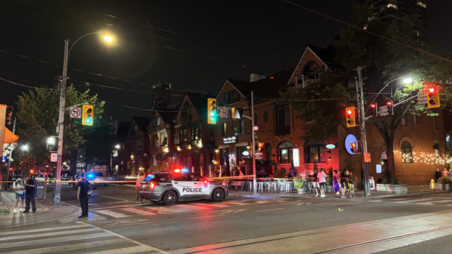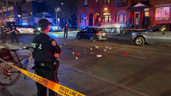 多伦多警方正在调查一起发生在市中心娱乐区的事件,一名男子中枪受伤被送往医院,生命垂危。
