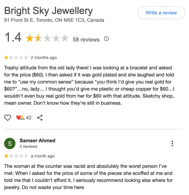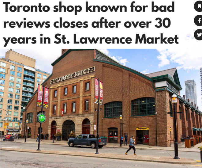 甚至有人直接在评论里留言给店主:“收摊退休吧!你们是在浪费圣劳伦斯市场的宝贵位置。”