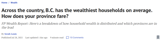 据Financial Post报道,在2025年第一季度中,加拿大财富飙升至$17.6万亿,创下历史新高,并且在这其中BC省的家庭财富居全国之首。