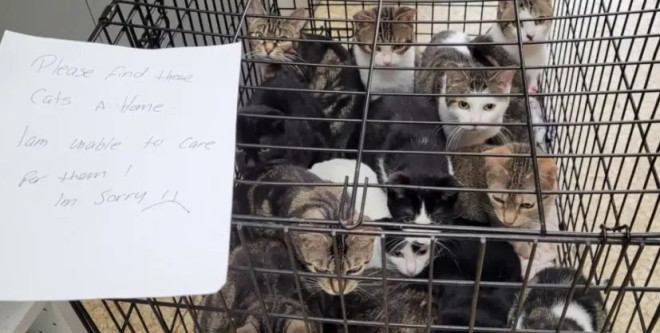 但猫咪的数量还在继续上升——第三批猫是在另一个公园发现的,当时有人把14只母猫关在狗笼里遗弃,笼子上还贴着一张纸条写着:“请为这些猫找个家。我已经无法照顾它们了!很抱歉。”