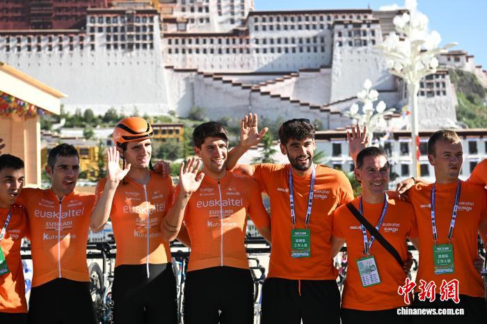 图为开幕式上巴斯克电信职业队队员在布达拉宫广场合影留念。 贡嘎来松 摄