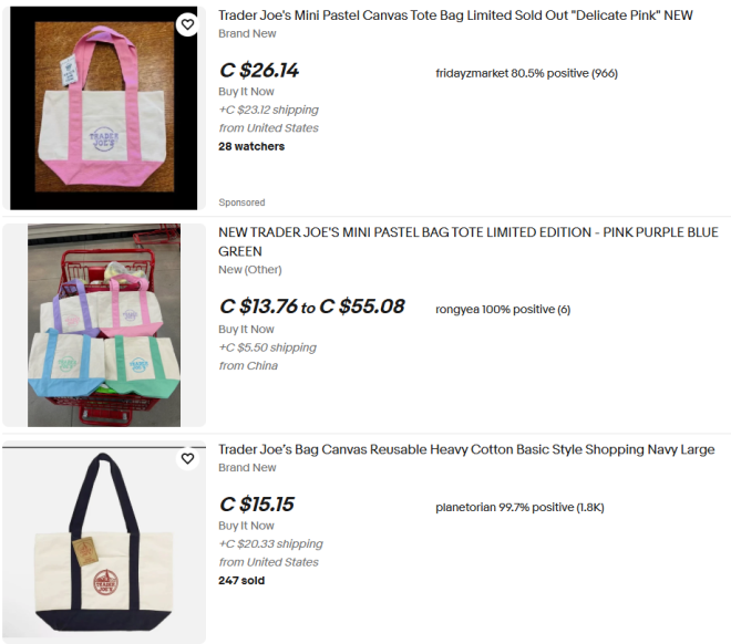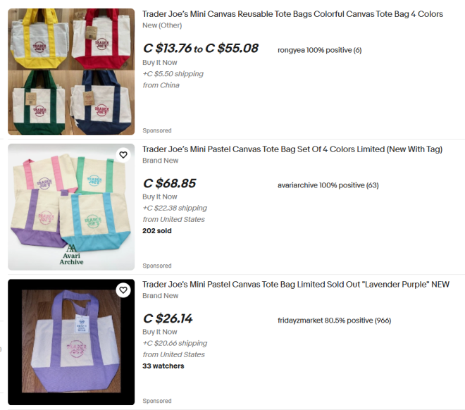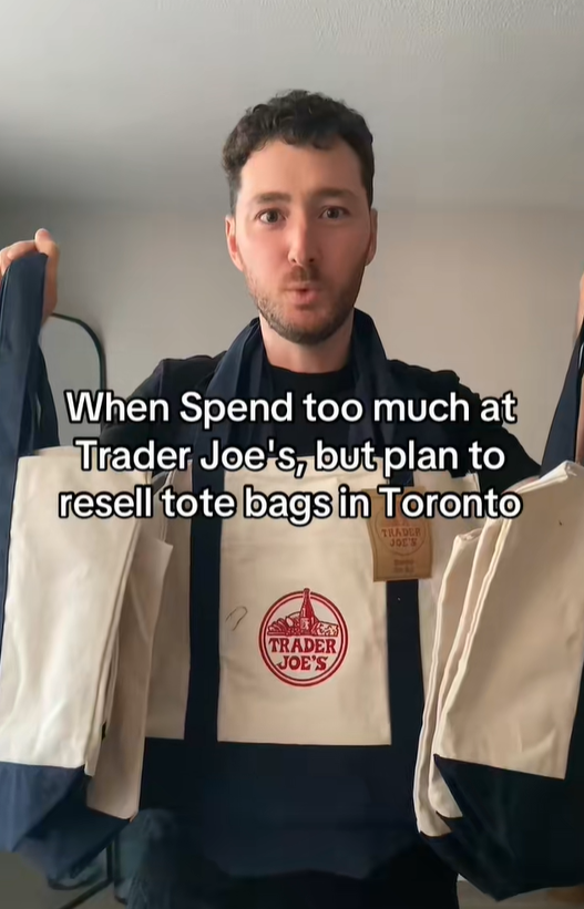 多伦多20岁大学生Pooja Gandhi每年都会和家人开车跨境去水牛城的Trader Joe’s超市扫货,过去,购物车里装满的是鸡汤小笼包、“Everything But The Bagel”调味料、黑巧花生酱杯等网红商品…而现在,帆布包成了最新的“必买单品”。