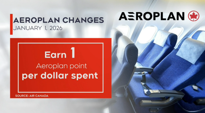 变动后,Aeroplan会员将每消费一加元,获得一个积分。
