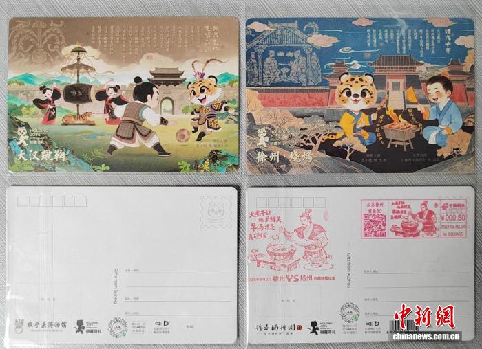 此外,洪流和他的设计团队联合其他文创团队,结合“苏超”赛事创作了《大汉蹴鞠》明信片。用灯光透过明信片,可以看到隐藏其中的《舞乐车马图》拓印,市民还可以用手机扫一扫明信片上的 AR体验码进行趣味互动。