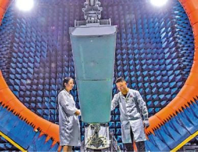 圖:「十四五」期間,中國5G技術引領全球。圖為工程師在位於廣東省東莞市松山湖的華為實驗室測試5G基站設備。\新華社