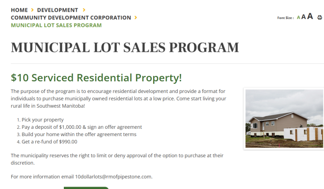 根据市镇官网的介绍,申请这些地块的流程很简单:选好地块、支付1,000加元押金并签署购地协议。地块的正式售价是10加元,但你必须在90天内开工,并在一年内完工。