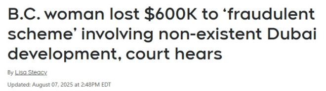 一个不存在的迪拜房产项目,竟骗走一名女子60万加元。