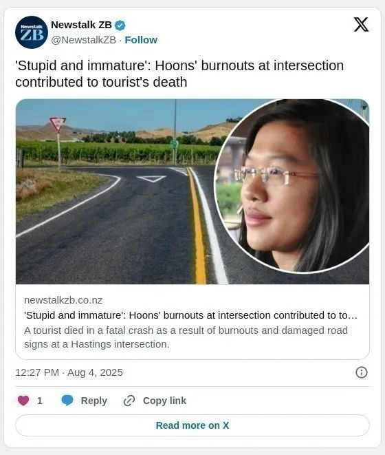 在事故发生后的一个月内,新西兰交通局(NZTA)安装了“高性能路面标线”并纠正了路标。该机构还添加了“高摩擦表面条带”,以遏制街头赛车活动,特别是路口的烧胎行为。
