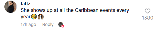 一位网友发现了她的喜好:“她每年都会在所有加勒比节日上出现!”