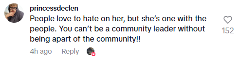 另一位网友也表示支持:“人们喜欢恨她,但她仍然和大家玩在一起。不融入社区,就不可能成为社区领袖!”
