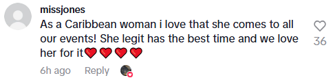 “作为一名加勒比女性,我很高兴她能参加我们所有的活动!她玩得真开心,我们都很喜欢她。”