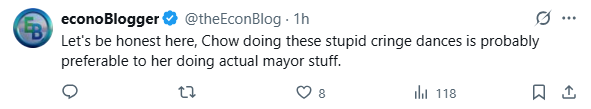“说实话,邹女士跳这愚蠢的尬舞,可能比她干真正的市长工作更好。”