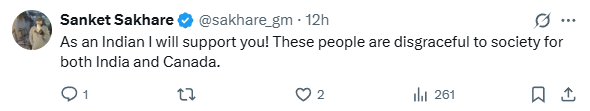 “作为一名印度人,我支持你!这些人对印度和加拿大的社会来说都是耻辱。”