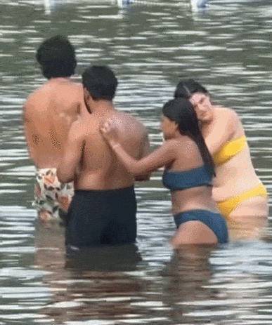 8月8日,社交媒体X上的网友@Freedom Girl转发了几张来自Tiktok的视频画面。画面显示4名印度男女在湖里混浴,相当惬意。截至目前,这条帖子已经有上千条评论,点赞数达到了1.1万。