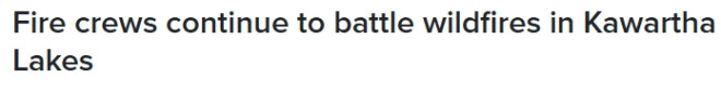 官员们说,卡瓦萨湖市消防员、特伦特湖(Trent Lakes)消防服务队以及来自北湾(North Bay)消防队增援人员也已部署到位,水上飞机也于周日重点扑灭了最活跃的火区。