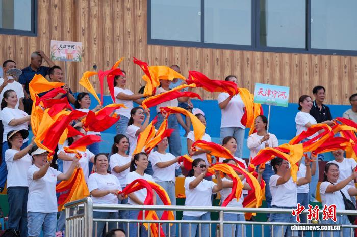 图为8月10日,拉拉队在场边为球队加油。龙建睿 摄