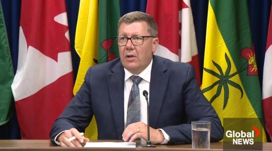 當地時間周二,薩斯喀徹溫省省長斯科特·莫伊在新聞發布會發言。視頻截圖