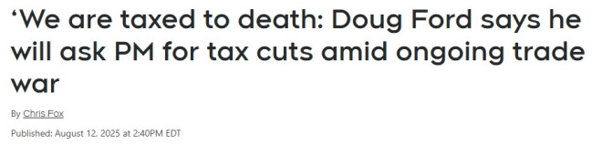 本月早些时候,特朗普将现有自由贸易协定覆盖范围以上的加拿大商品关税提高到35%,促使福特呼吁对美国商品实施“1对1”的报复性关税。