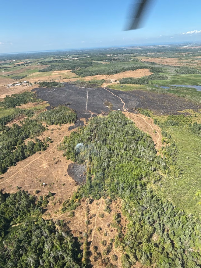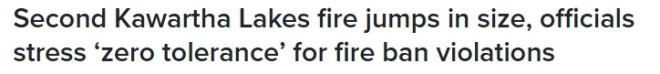 与此同时,卡瓦萨湖(Kawartha Lakes)地区一场野火仍在燃烧。另一场位于柯克菲尔德(Kirkfield,距Lindsay西北约40公里)的草地火灾需要动用空中洒水机救援,面积已从周一的5公顷迅速扩大到33.5公顷。