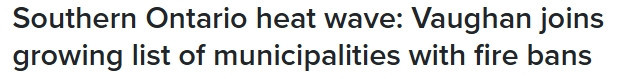 极端高温已促使十多个市镇实施全面禁火令,包括:万锦、、、King、Aurora、Newmarket、Ajax、Oshawa、Pickering、Clarington、Innisfil、Caledon、Milton、Oakville、Burlington、汉密尔顿、Kitchener、卡瓦萨湖( Kawartha Lakes)和尼亚加拉瀑布市(Niagara Falls)。
