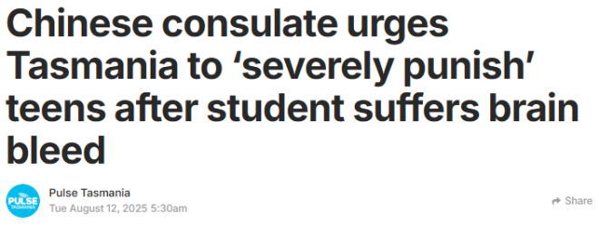 今年6月,中国驻布里斯班总领事馆也发布过类似的警告,提醒市民注意防范本地青少年在公共场所对中国公民的袭击。