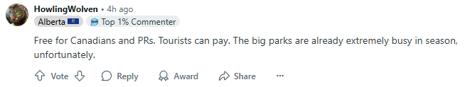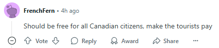 当初 Canada Strong Pass 被宣传为加拿大人专属的福利,但为什么国际游客也可以使用?洛恩说:“这应该只对纳税人开放。它是为了让加拿大人能进入加拿大的公园。”