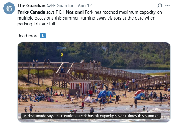 7 月下旬,爱德华王子岛国家公园宣布,该公园的游客数量和交通拥堵都达到了创纪录的水平。