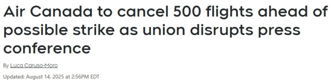 加航高管周四解释说,停工将影响每天约13万名乘客,其中包括数千名可能滞留海外的加拿大旅客。